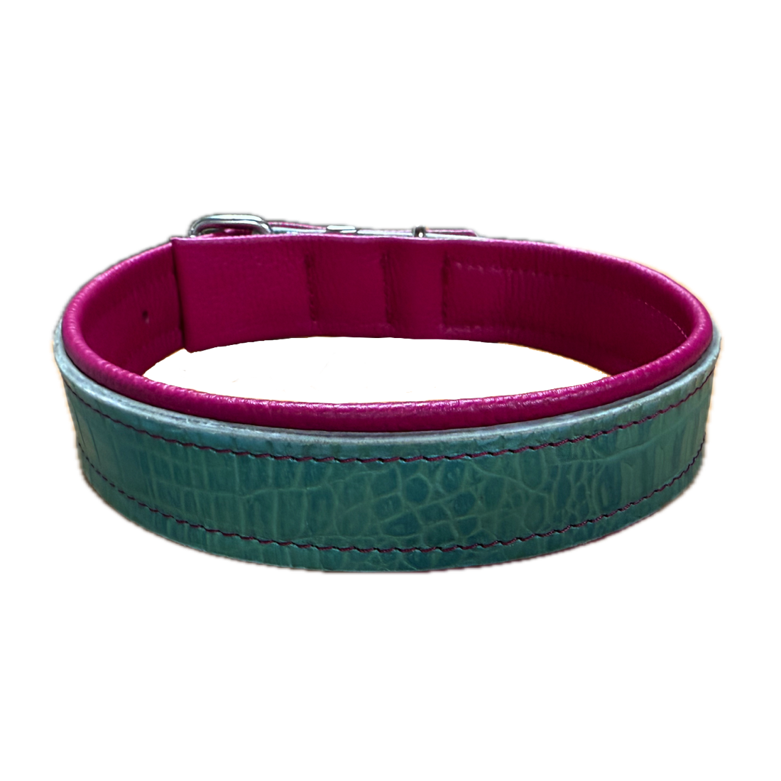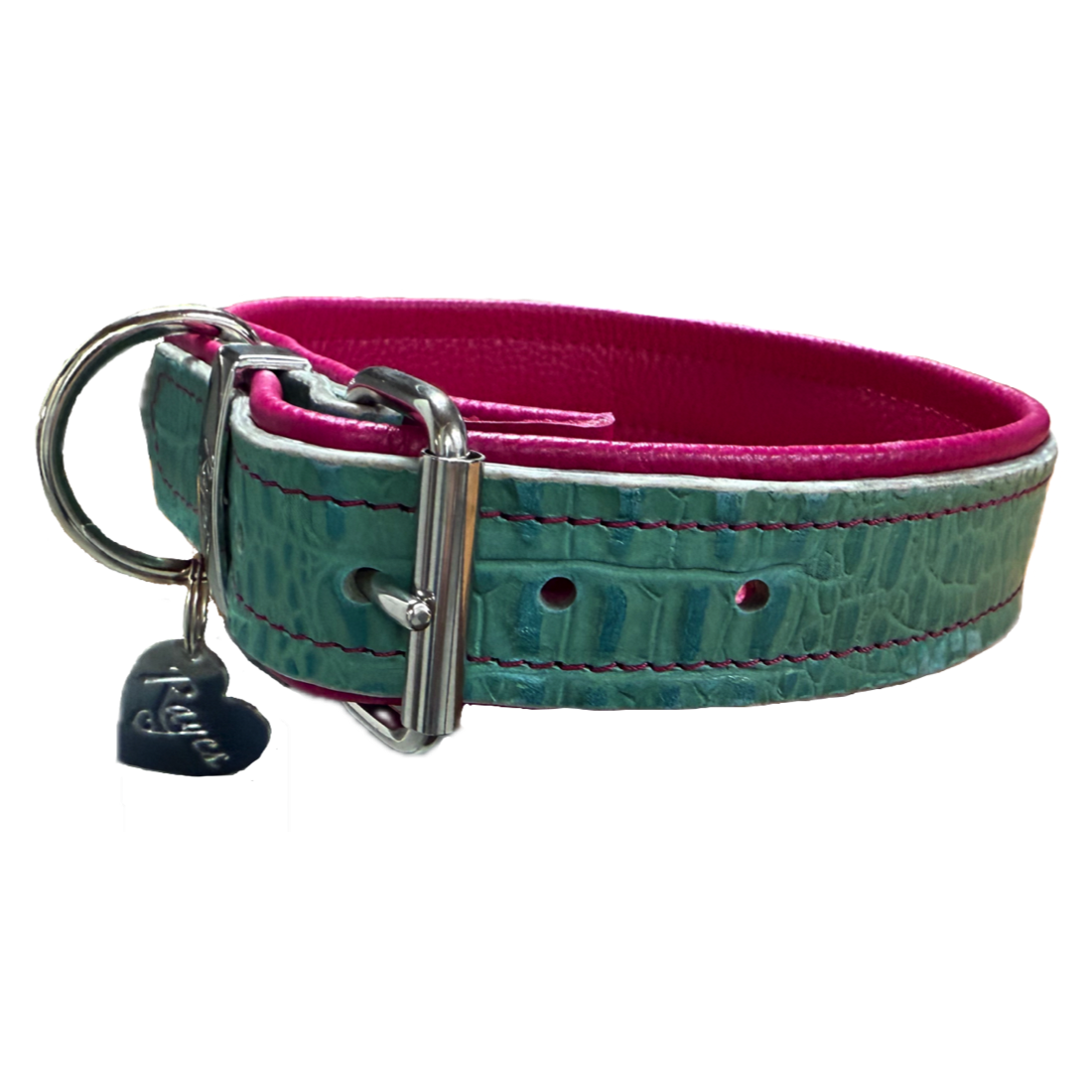 Alle Halsbänder sind auf die Anatomie des Hundes angepasst und weich unterpolstert. Die "schmalen" Halsbänder sind 2.5 cm breit und sind für kleine Hunde oder Hunde mit einem kurzen Hals bis 40 cm Halsumfang geeignet. Die "breiten" Halsbänder sind 4 cm breit und für Grosse Hunde geeignet oder für kleine Hunde mit langem Hals ab einem Halsumfang von 32 cm. Die Anordnung von Ring und Schnalle ist so gewählt, dass die Schnalle bei Zug an der Leine nicht auf den Kehlkopf des Hundes drücken kann. Dies ist bei den meisten Lederhalsbändern, welche heute im kommerziellen Handel erhältlich sind, leider nicht der Fall. Die Schnalle ist bei allen Rayes-Halsbändern unterpolstert, so dass nichts drückt und keine Haare in der Rolle der Schnalle eingeklemmt werden. Für die Herstellung werden nur hochwertige Materialien verwendet.