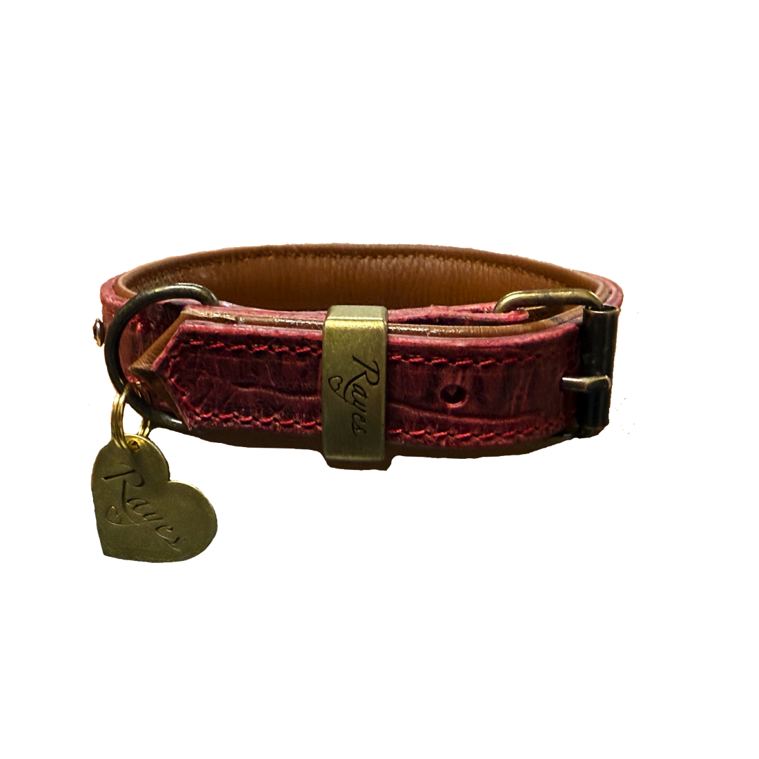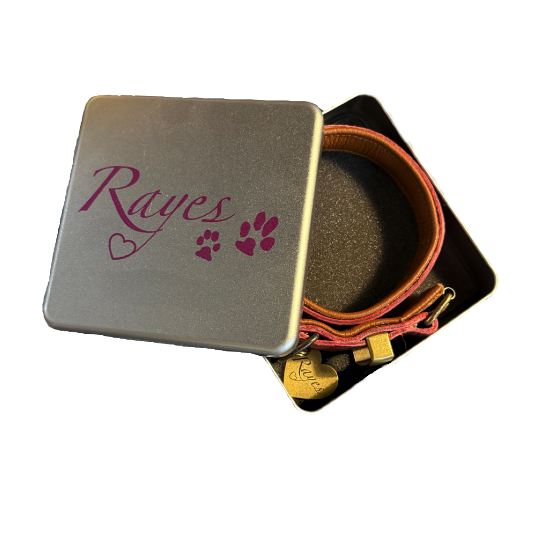Alle Halsbänder sind auf die Anatomie des Hundes angepasst und weich unterpolstert. Die "schmalen" Halsbänder sind 2.5 cm breit und sind für kleine Hunde oder Hunde mit einem kurzen Hals bis 40 cm Halsumfang geeignet. Die "breiten" Halsbänder sind 4 cm breit und für Grosse Hunde geeignet oder für kleine Hunde mit langem Hals ab einem Halsumfang von 32 cm. Die Anordnung von Ring und Schnalle ist so gewählt, dass die Schnalle bei Zug an der Leine nicht auf den Kehlkopf des Hundes drücken kann. Dies ist bei den meisten Lederhalsbändern, welche heute im kommerziellen Handel erhältlich sind, leider nicht der Fall. Die Schnalle ist bei allen Rayes-Halsbändern unterpolstert, so dass nichts drückt und keine Haare in der Rolle der Schnalle eingeklemmt werden. Für die Herstellung werden nur hochwertige Materialien verwendet.